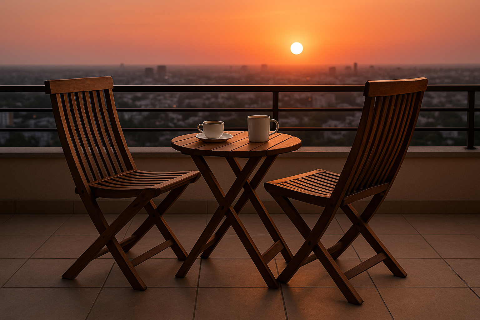 Transform your balcony, terrace, or garden into a warm and inviting space with the Tharkraft Saanjh Folding Bistro Set. Designed for compact spaces, this set includes a sturdy round folding table and two ergonomically designed chairs.